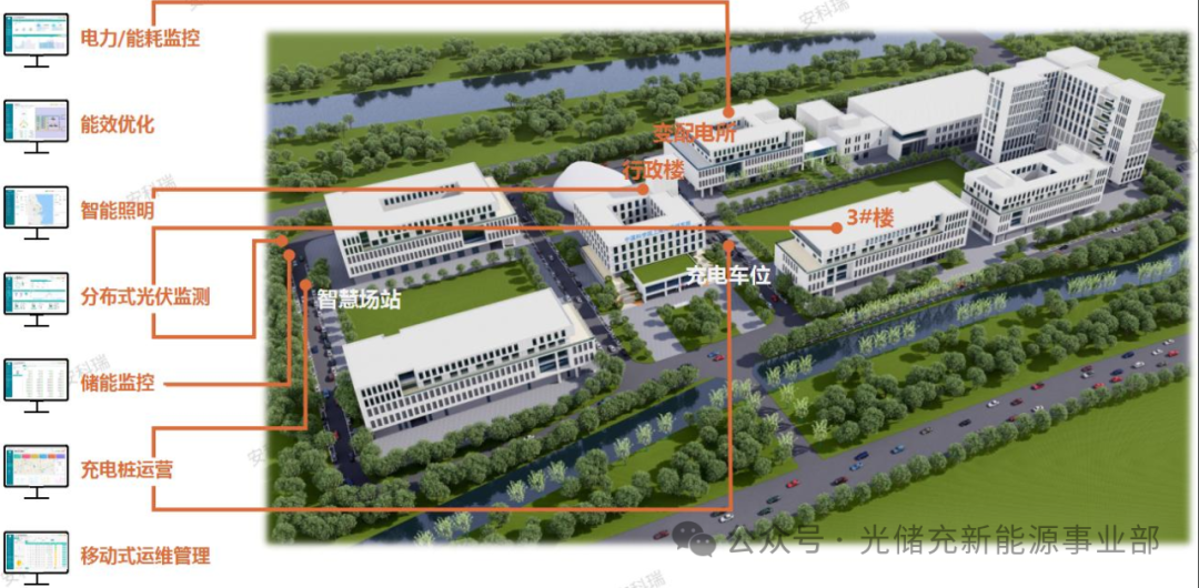 范圍包括辦公樓、實驗室、食堂等共13棟建筑和7個電瓶車車棚以及一個智慧充電場站,實施內